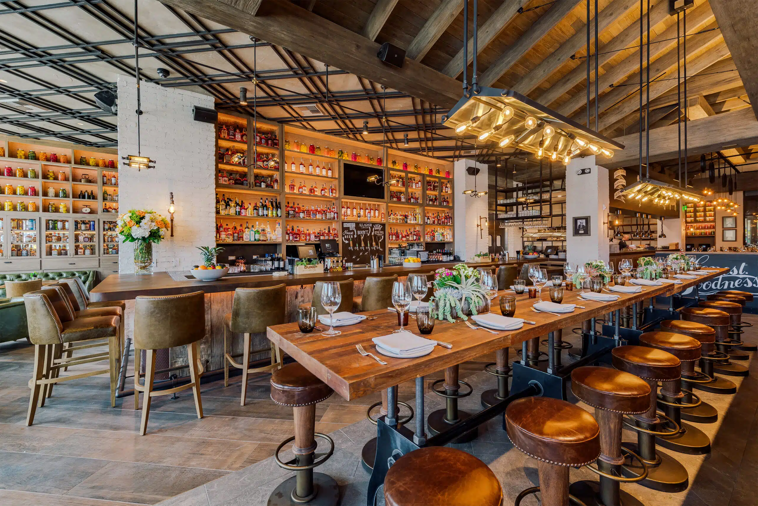 Step into the invitingly designed restaurant, with its captivating exposed ceilings and soothing wooden accents. Choose from cozy tables or the bourbon bar for a delightful experience of the city’s finest spirits. You’ll be sure to enjoy your time in this rustic atmosphere!