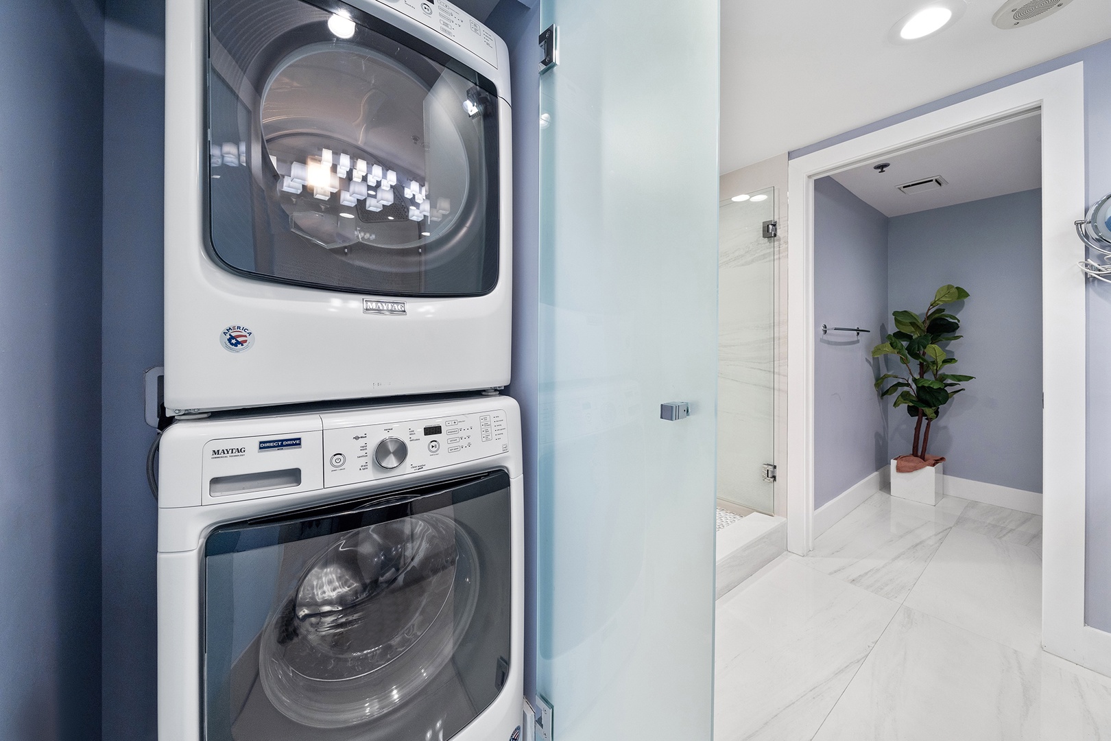 • 2 bedrooms, 2 bathrooms, full kitchen, living area, and washer/dryer.