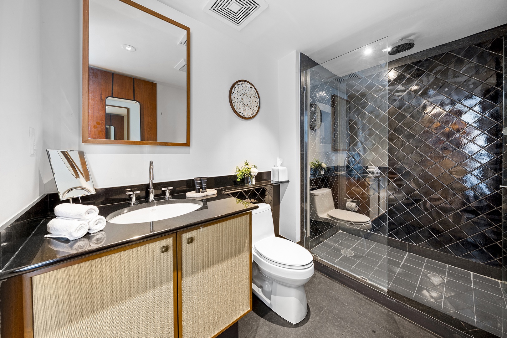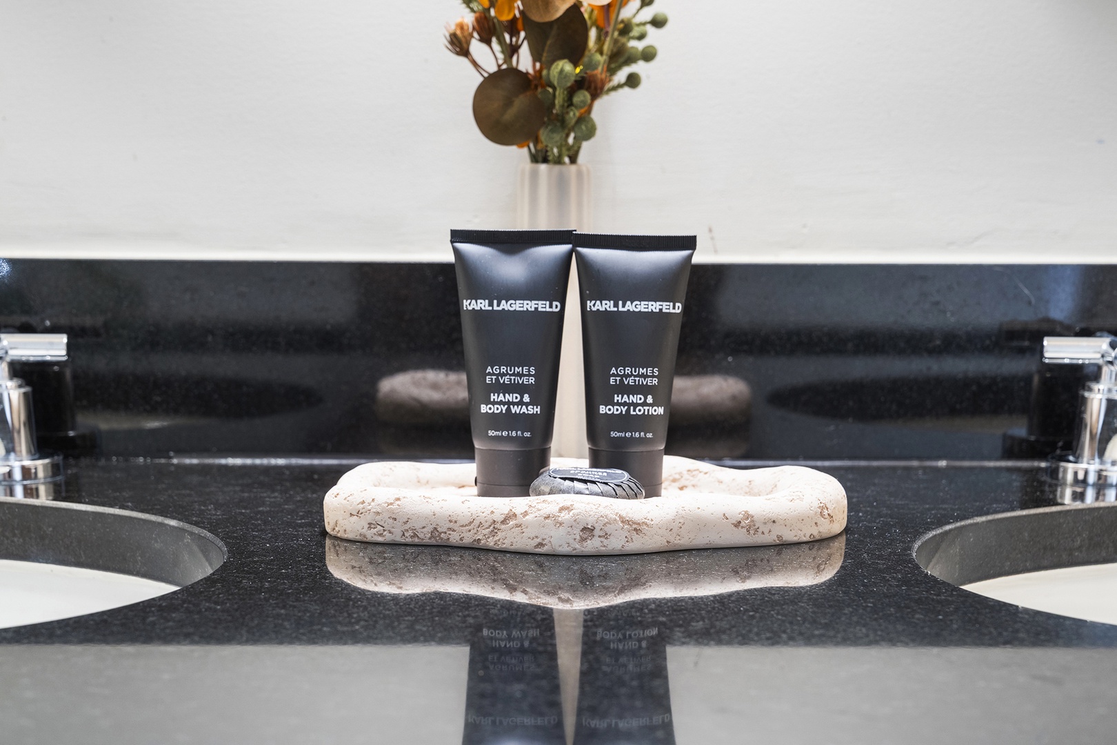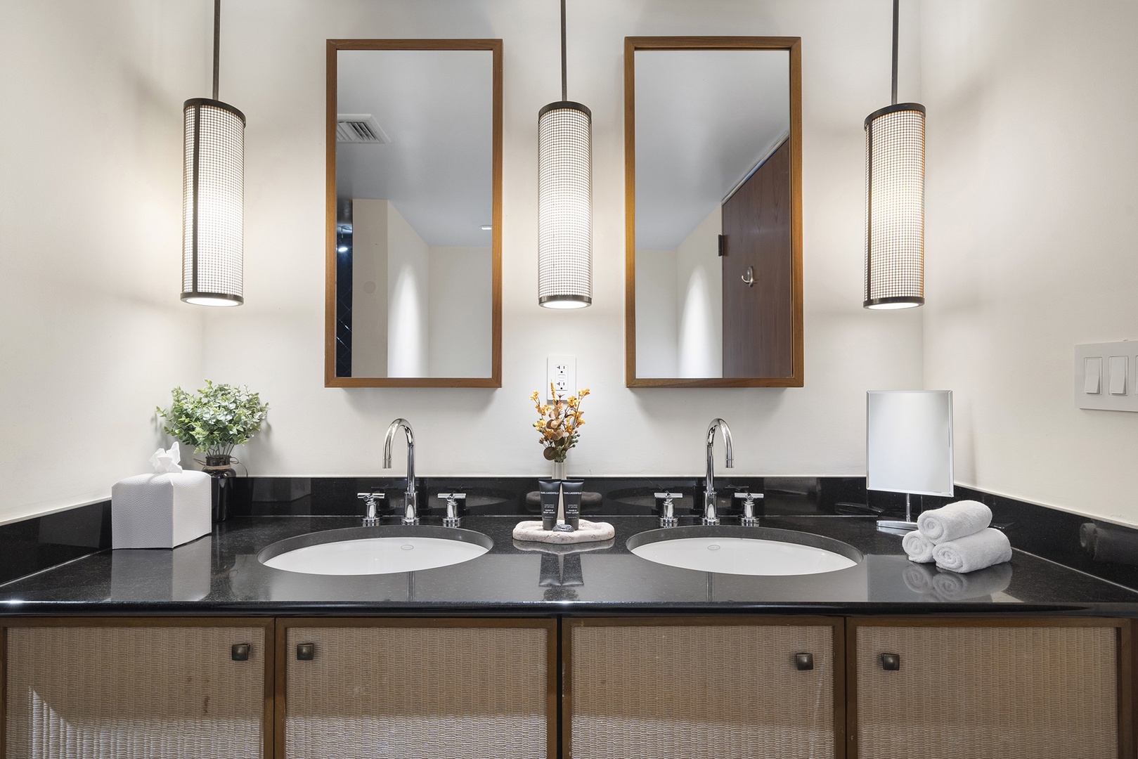 • Bathrooms are fully stocked with premium hotel room amenities and toiletries.