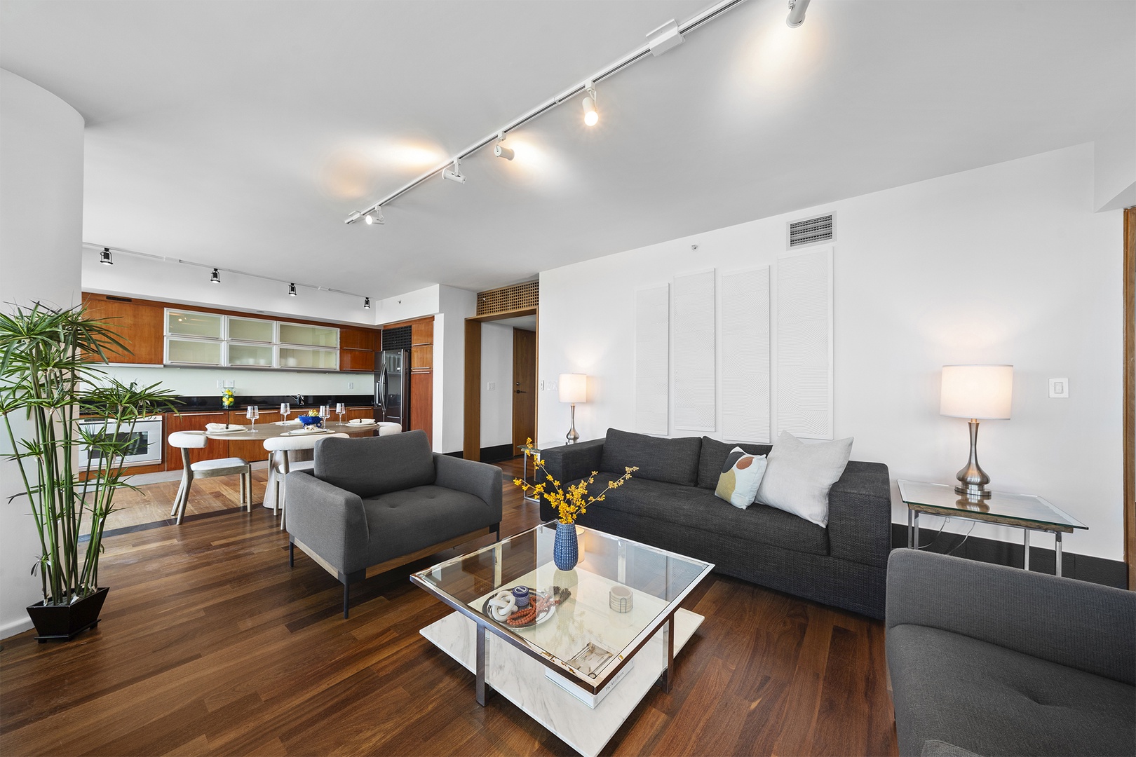 Come enjoy the sophistication and opulence of this private residence located at The Setai Hotel on Miami Beach. This residence has two bedrooms plus a Den that have a modern full-size sofa-bed, three bathrooms, a well-appointed kitchen, and a living space. It is a perfect option for family vacations and couple retreats. Nestled in the heart of South Beach, this home provides access to all that South Beach has to offer, while also providing a serene, tranquil retreat from the hustle and bustle of the city.