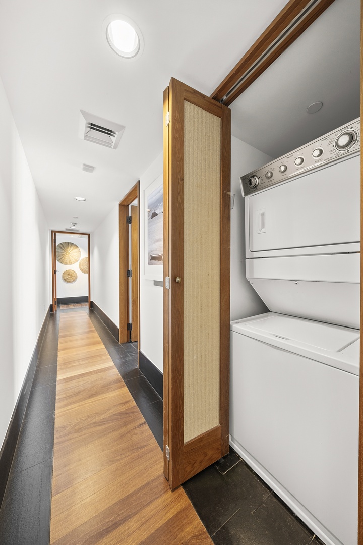 • Separate 2 bedrooms plus den, 3 bathrooms, full kitchen, living room, washer/dryer, and balcony.
