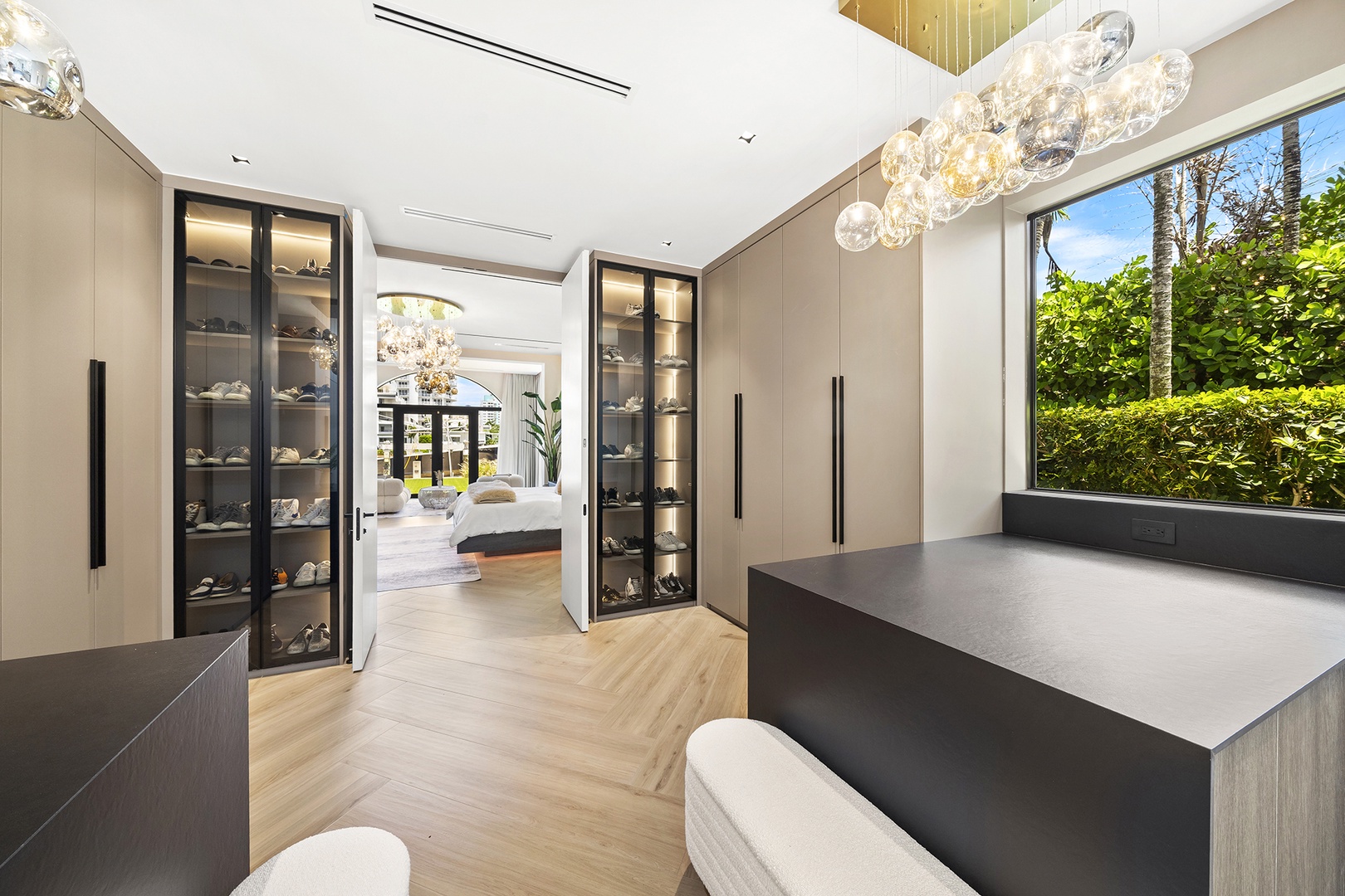 Outdoors, the villa unfolds into a private sanctuary featuring a heated swimming pool, sun-soaked terraces, and a private dock offering direct access to the ocean. Here, mornings begin with coffee as yachts drift past, afternoons invite refreshing swims beneath the Florida sun, and evenings transform into elegant gatherings under a canopy of stars. Whether it’s a tranquil escape or an entertainer’s dream, the home’s seamless indoor-outdoor flow ensures every moment is unforgettable.