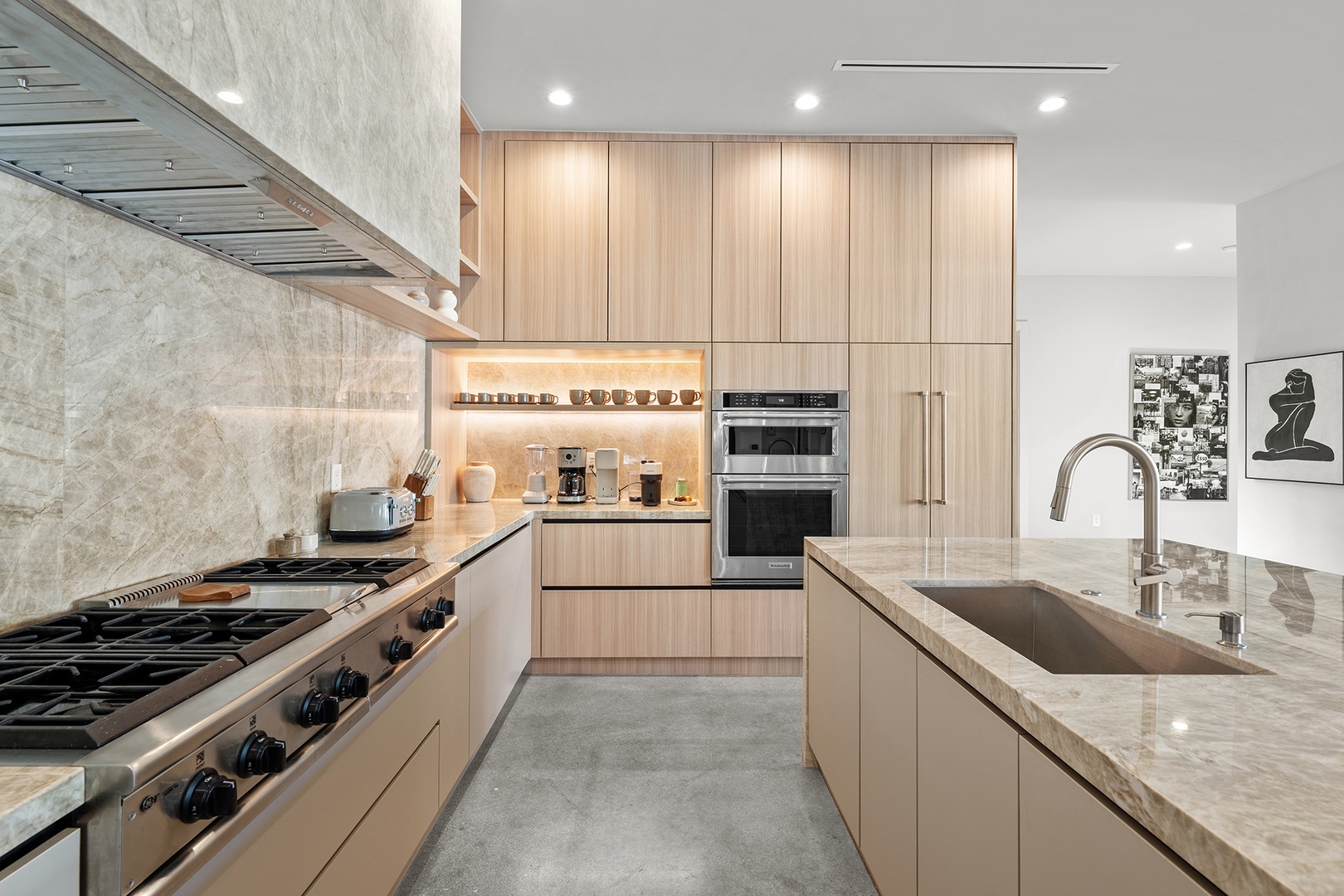 • Outdoor kitchen, BBQ grill, and alfresco dining area ideal for entertaining.