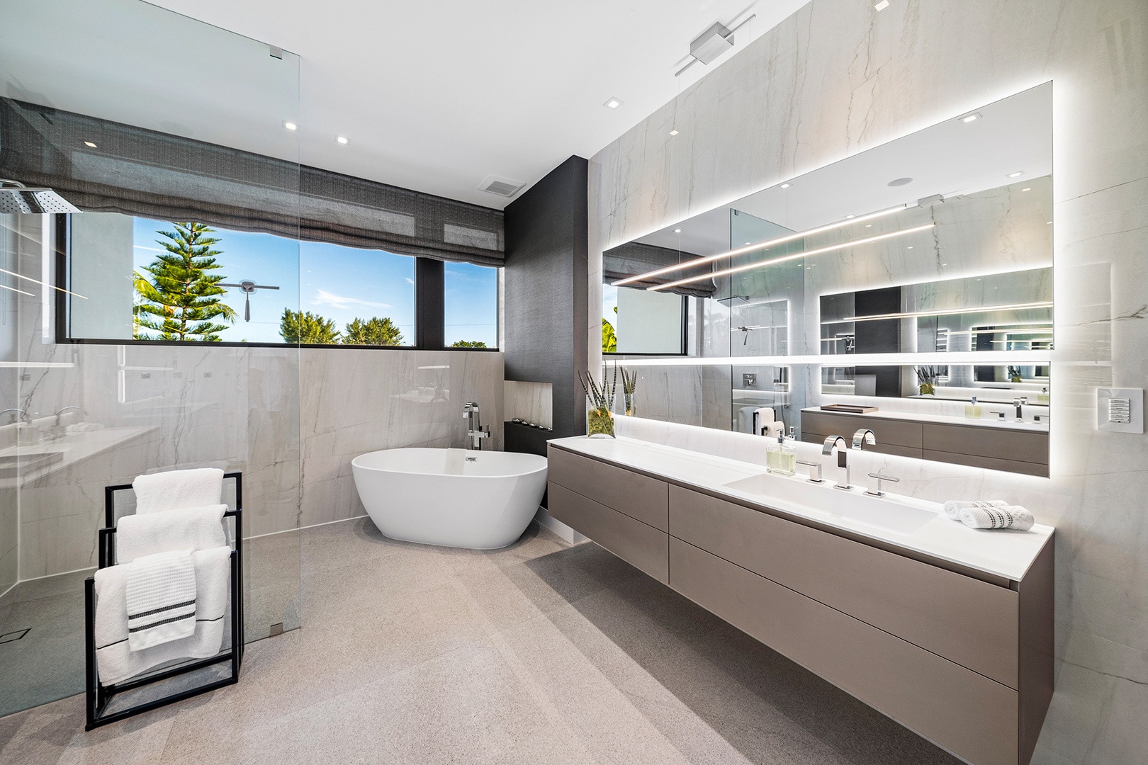 • Bathrooms are fully stocked with premium hotel room amenities and toiletries.