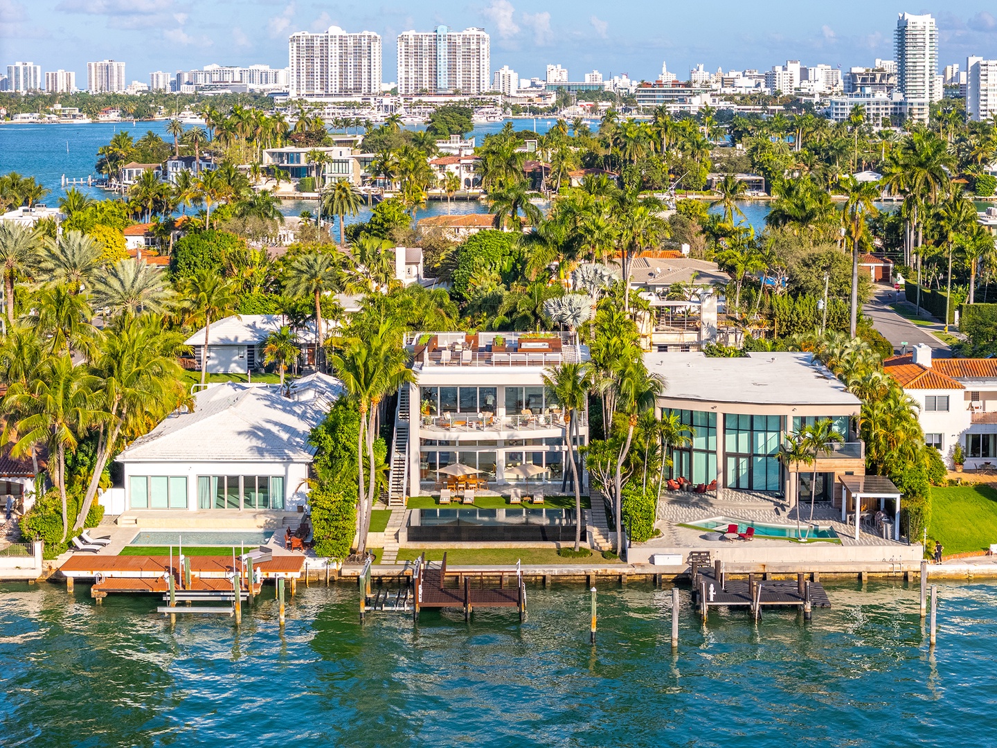 Villa Oasis is a striking waterfront home located on the exclusive Venetian Islands, offering privacy, prestige, and seamless access to Miami Beach, Sunset Harbour, and Downtown. It is a modern tropical retreat featuring expansive floor-to-ceiling windows, soaring wood-accented ceilings, and breathtaking water and skyline views throughout.