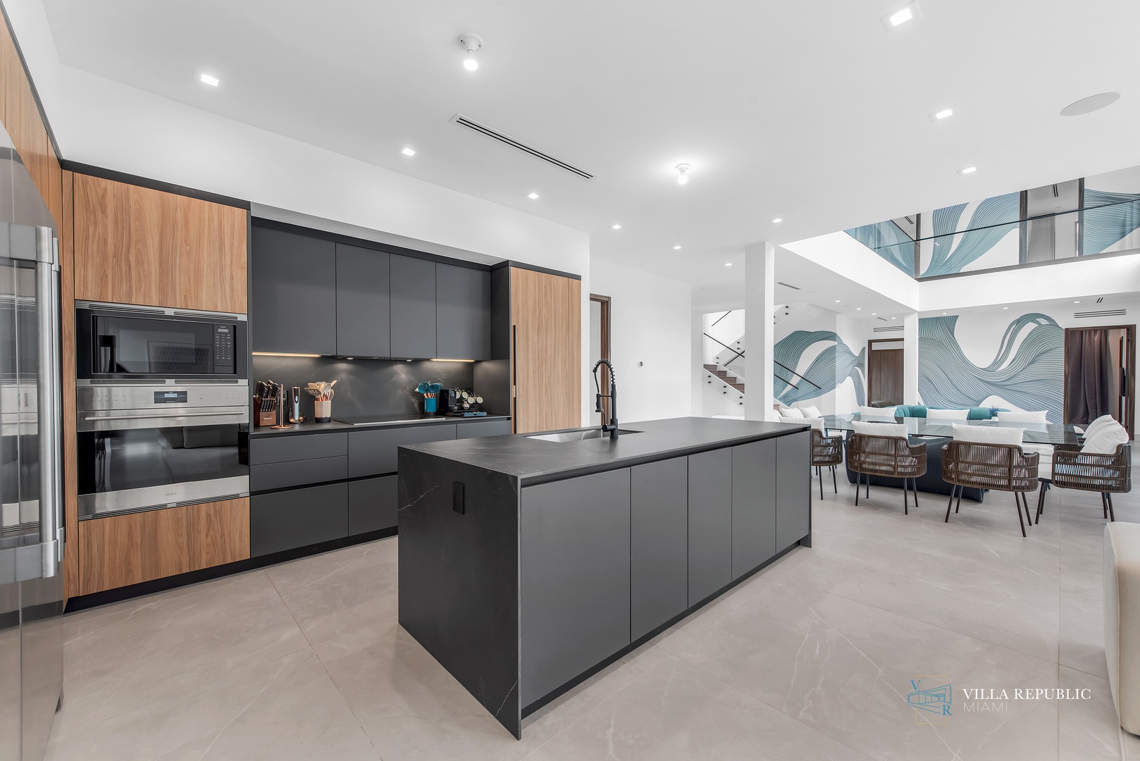 As you step inside, you'll be captivated by the contemporary design and meticulous attention to detail that defines every inch of this home. The expansive entertainment areas provide an ideal setting for gatherings, offering ample room for both relaxation and celebration. The open-concept design seamlessly connects the living spaces, dining area, and the gourmet kitchen, creating a true heart of the home.