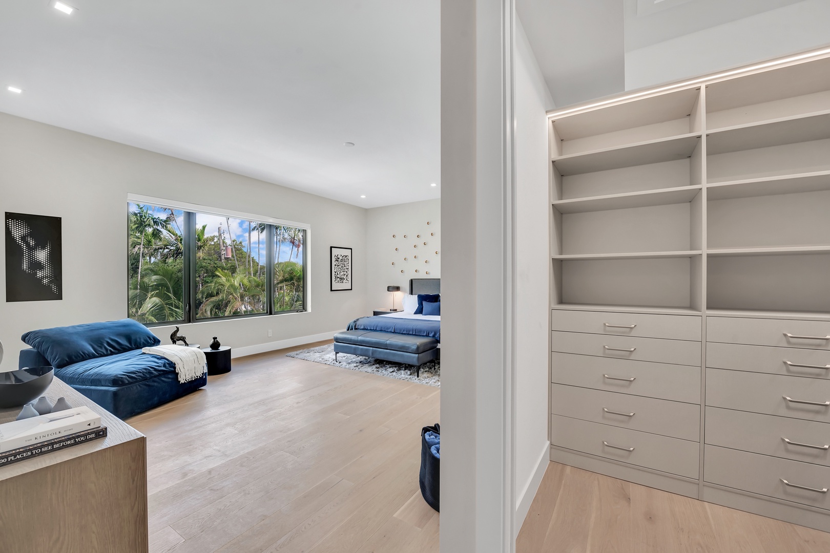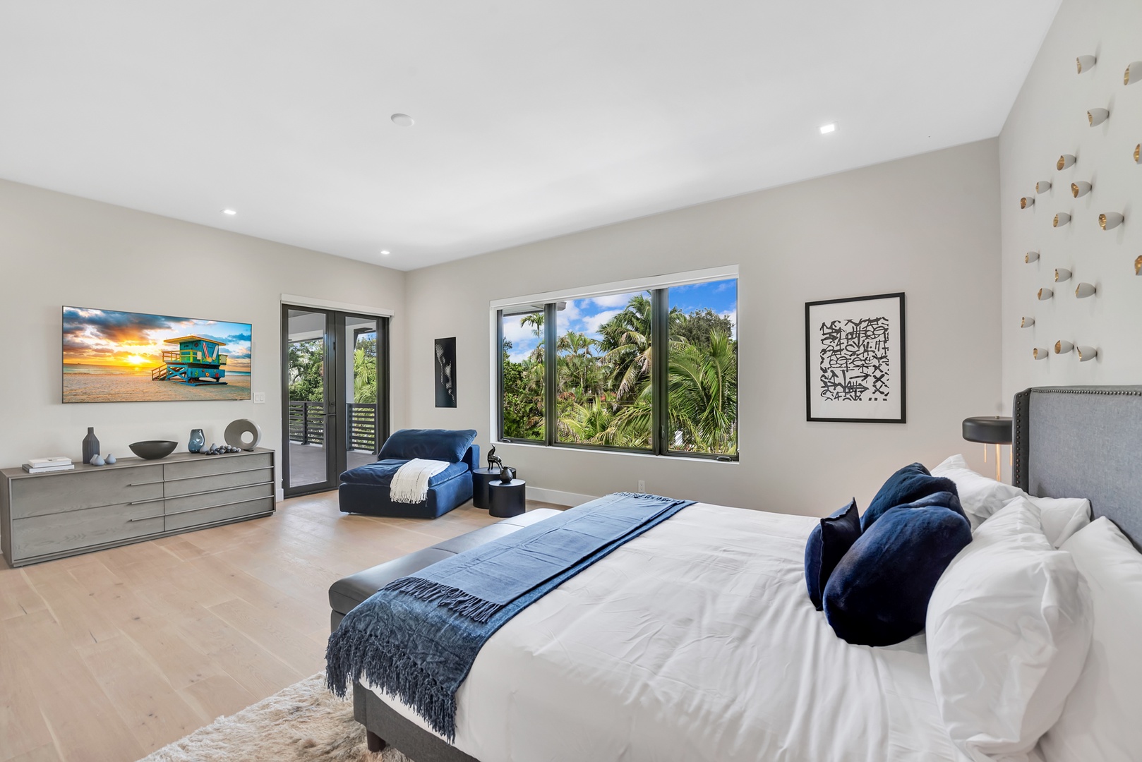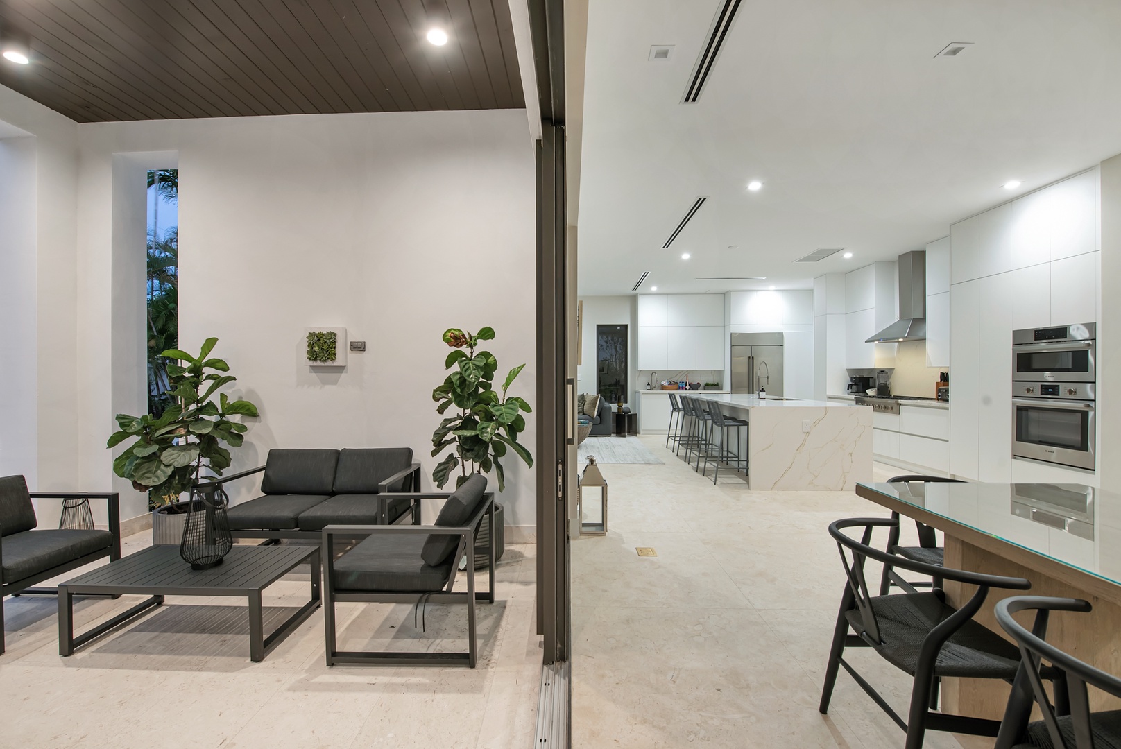 Outdoors, the Villa captures the essence of Miami living with coral stone accents, a resort-style pool and Jacuzzi, and multiple terraces designed for lounging and dining. The summer kitchen provides the perfect setup for alfresco entertaining, while the surrounding tropical landscaping completes this magazine-worthy setting.