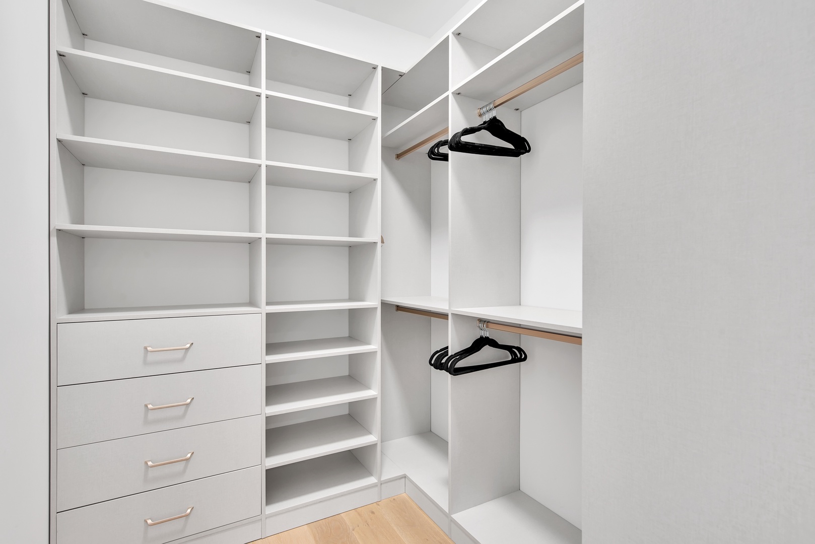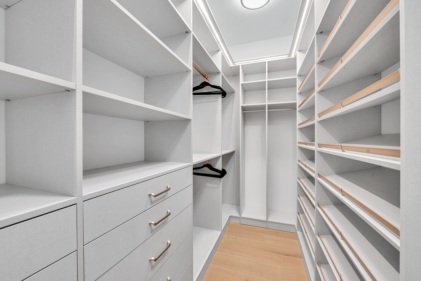• Gourmet kitchen with 12-foot waterfall quartz island and premium appliances.