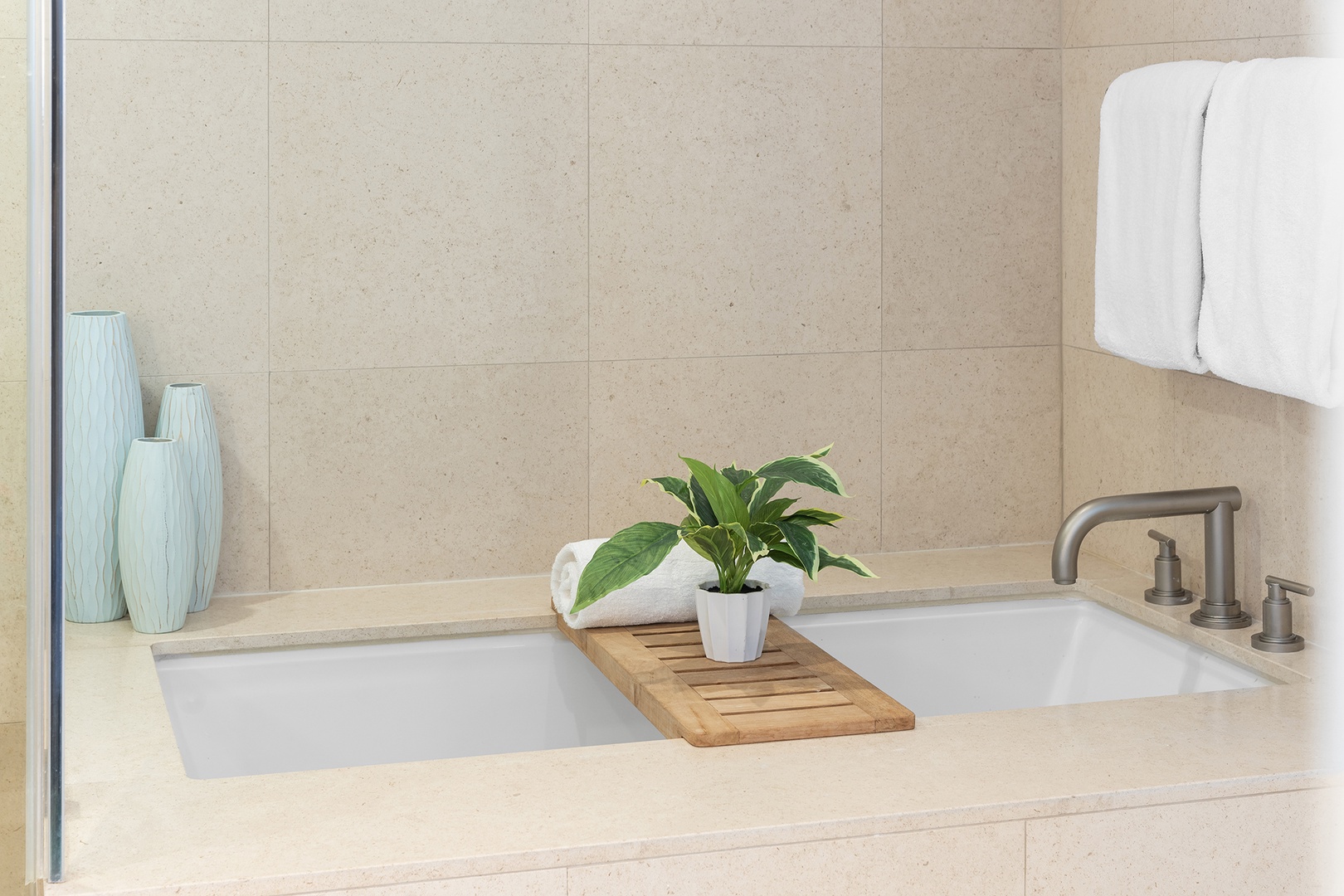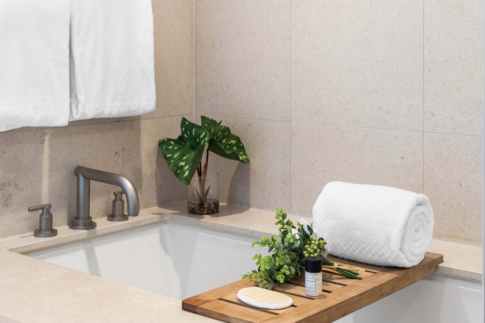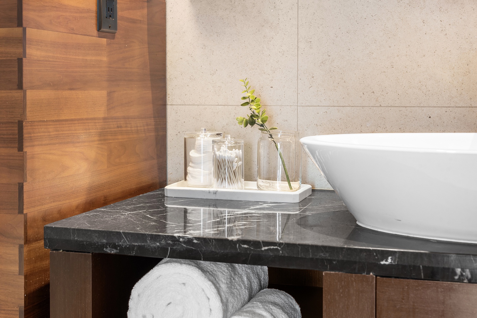 • Bathrooms are fully stocked with premium hotel room amenities and toiletries.