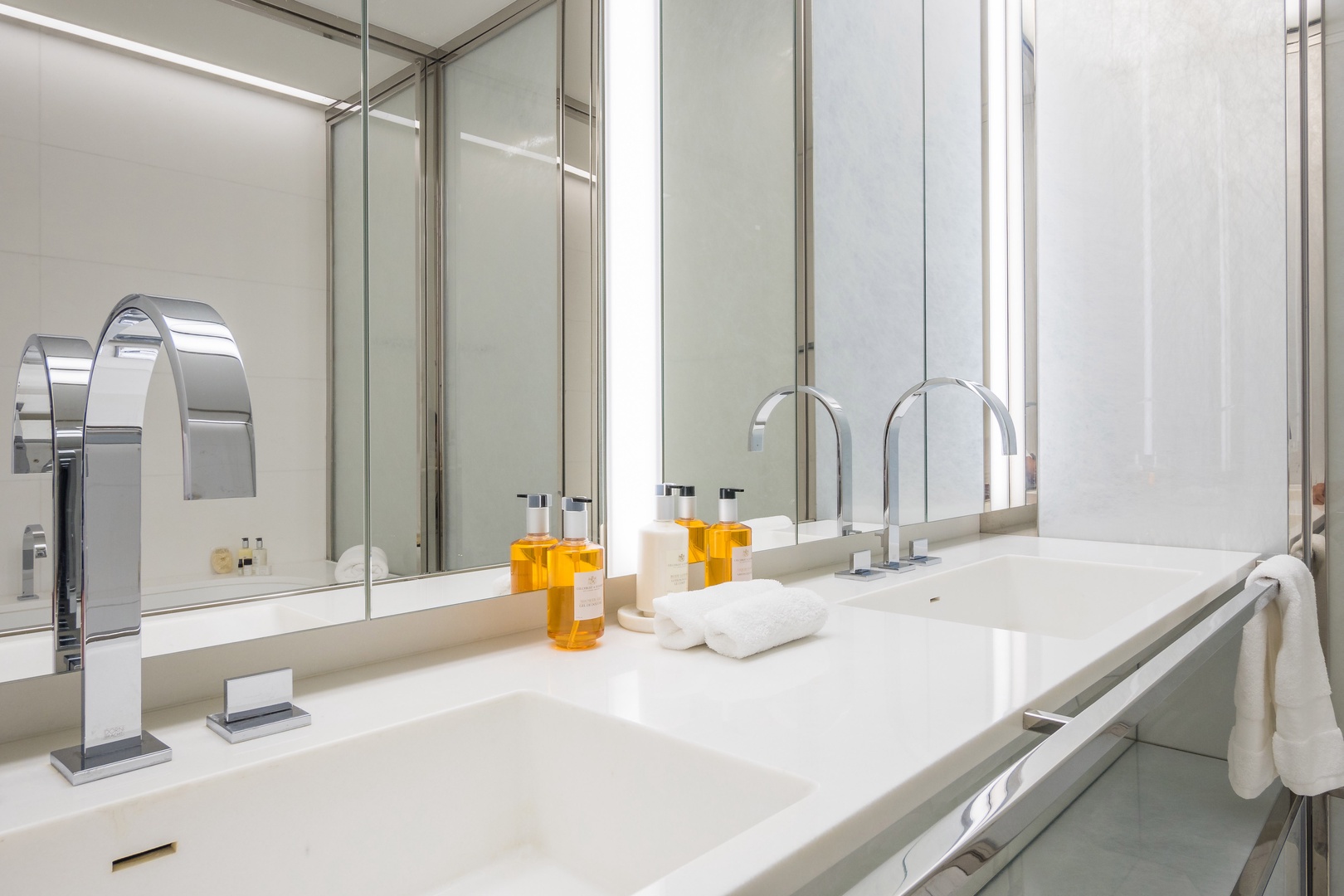 • Bathrooms are fully stocked with premium hotel room amenities and toiletries.