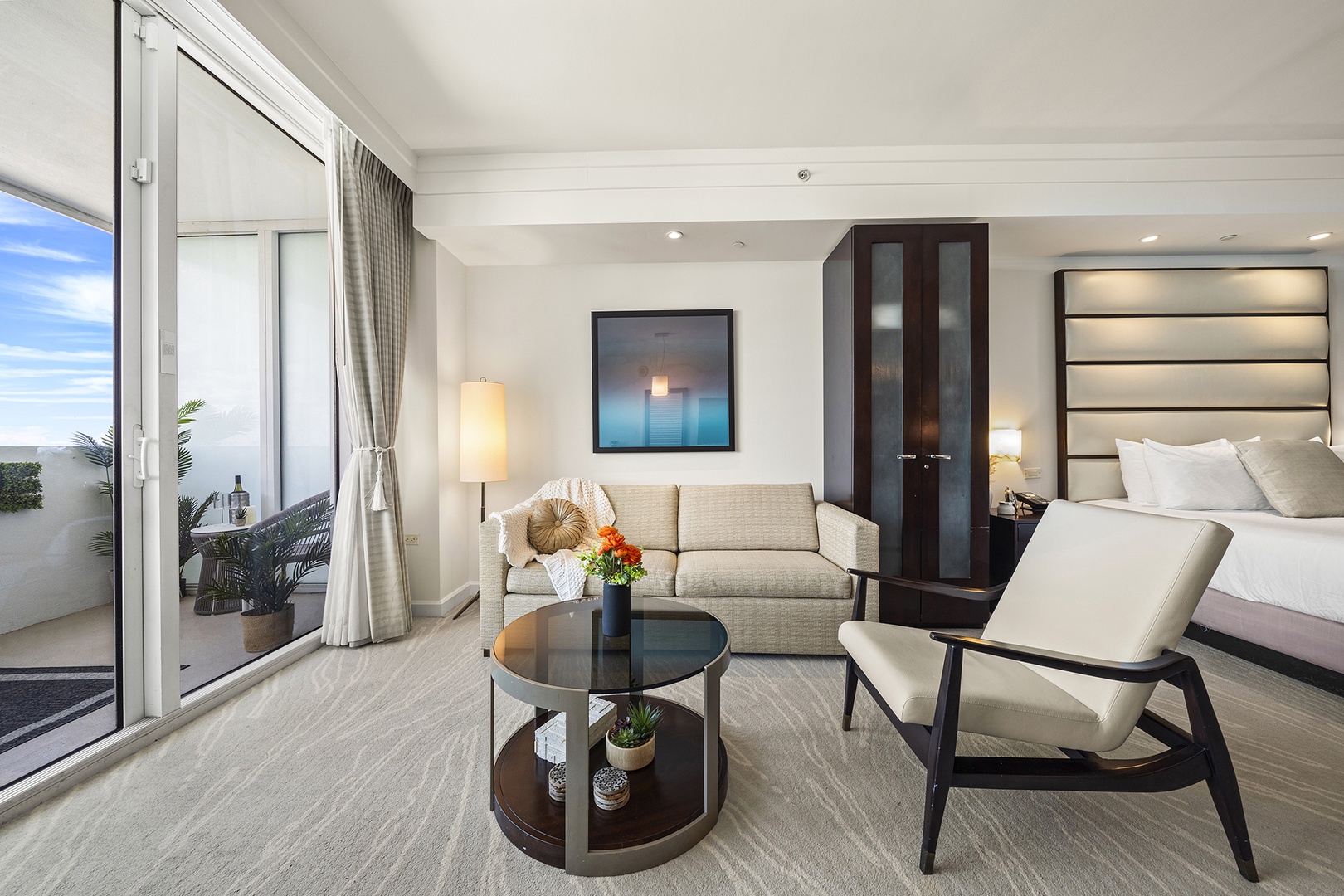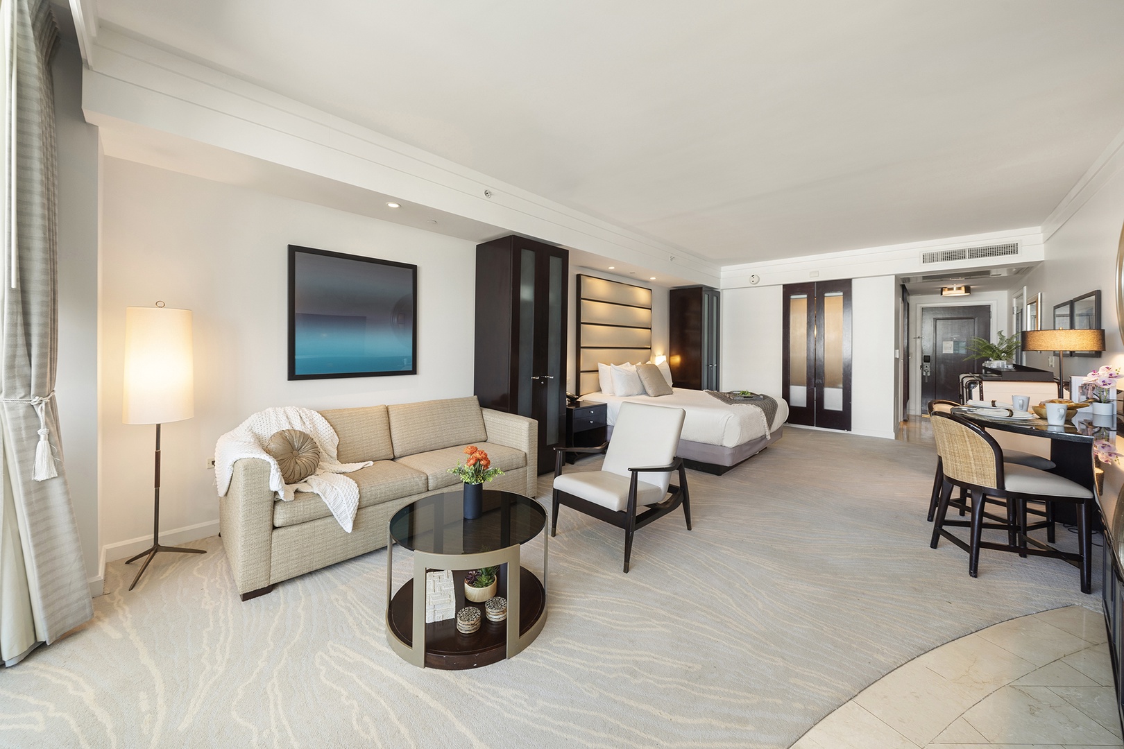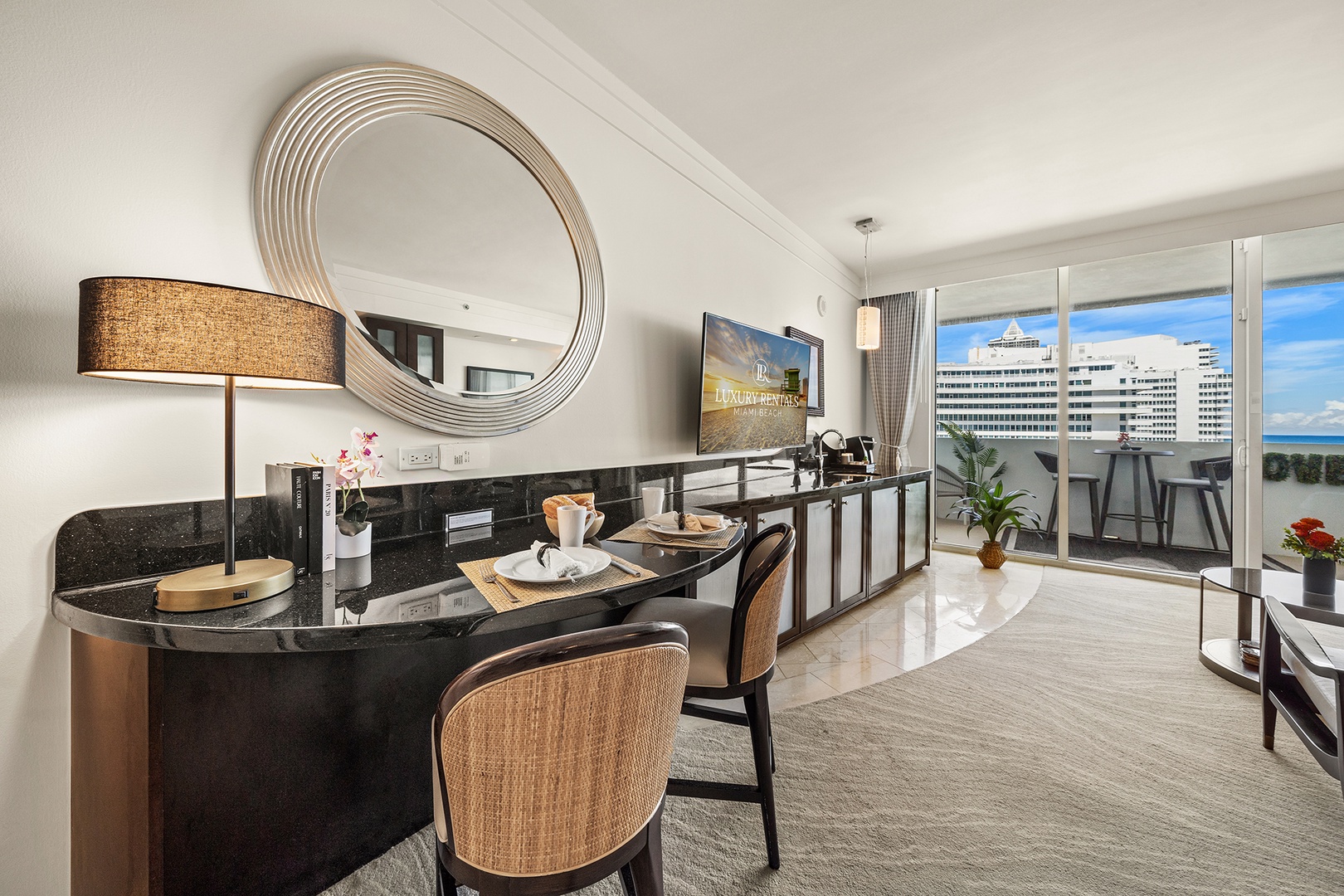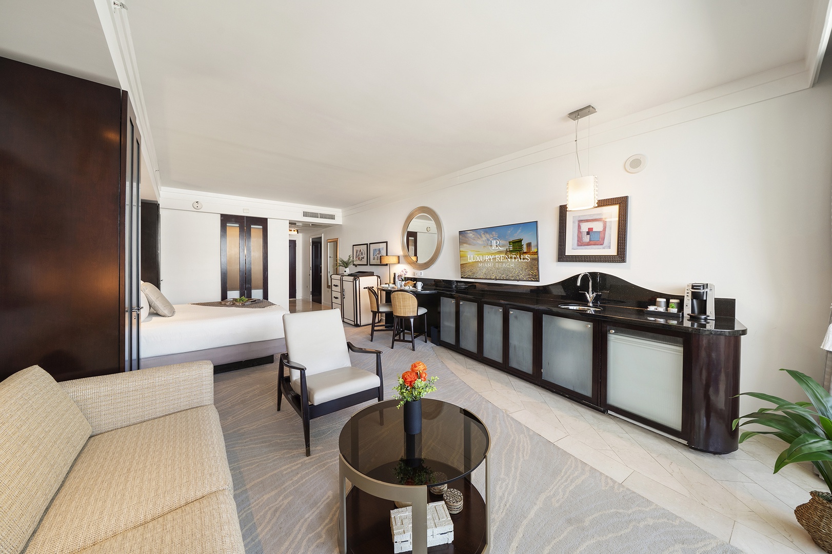 The studio residence merges history and style with elegant interiors, marble bathrooms, and partial ocean views. io residence merges history and style with elegant interiors, marble bathrooms, and partial ocean views. Ideal for couples seeking the Fontainebleau experience in an intimate setting.