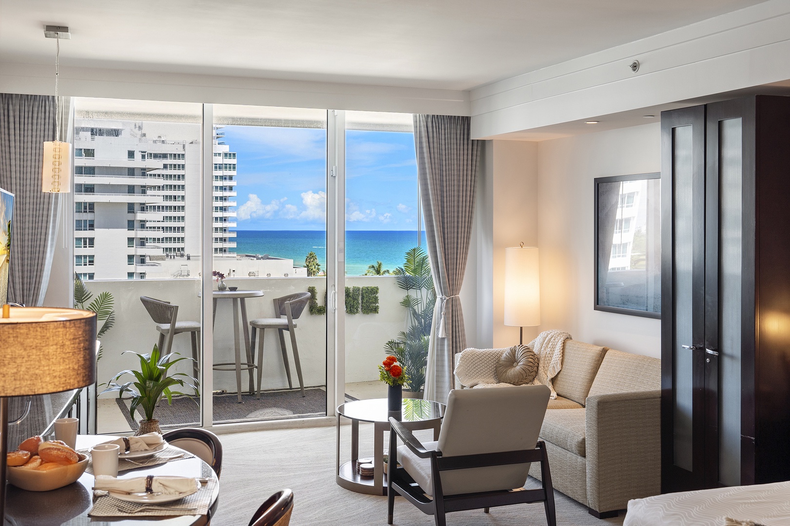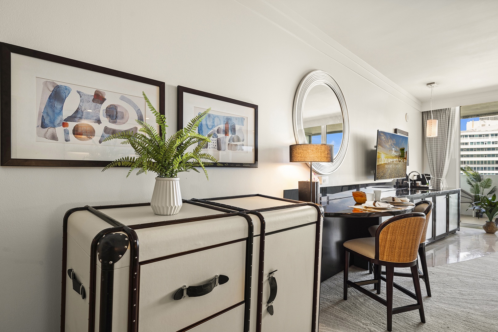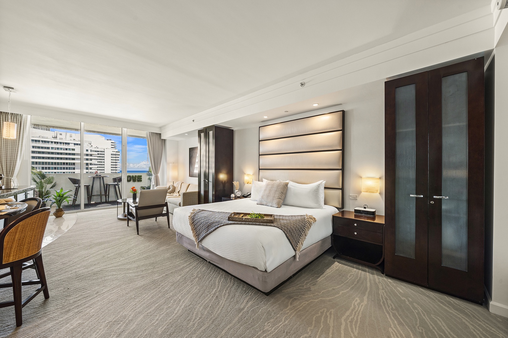 The studio residence merges history and style with elegant interiors, marble bathrooms, and partial ocean views. io residence merges history and style with elegant interiors, marble bathrooms, and partial ocean views. Ideal for couples seeking the Fontainebleau experience in an intimate setting.