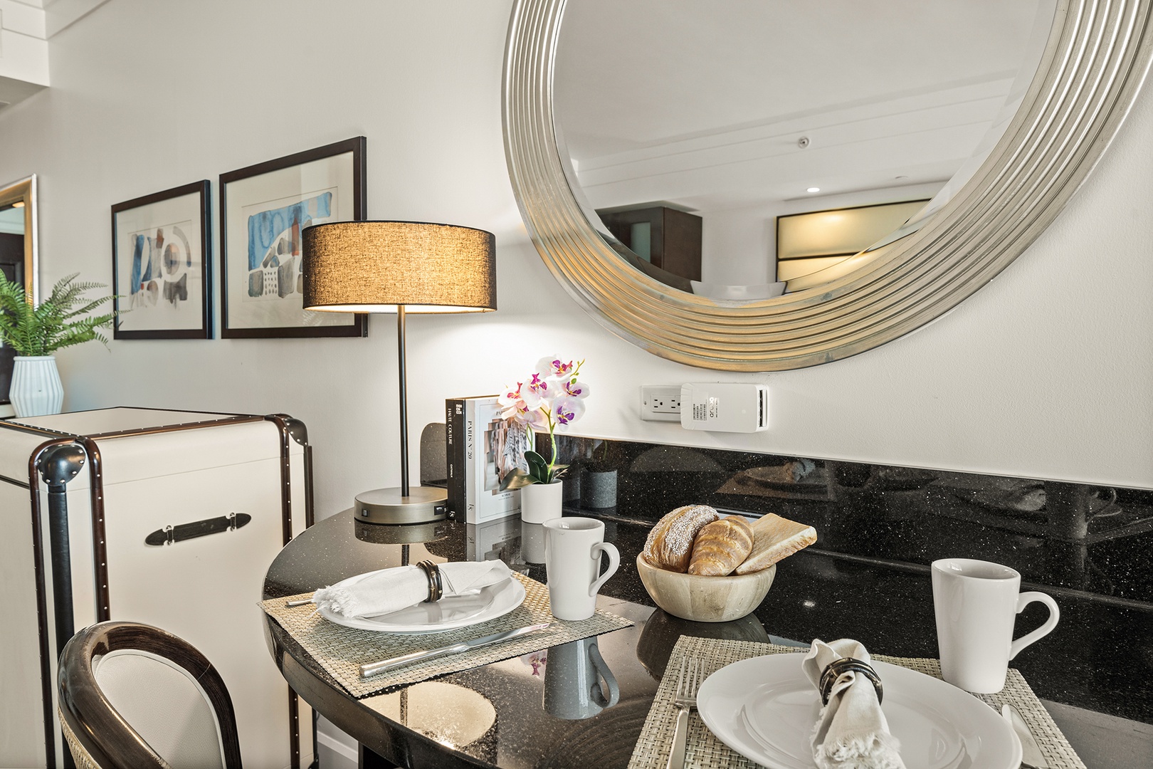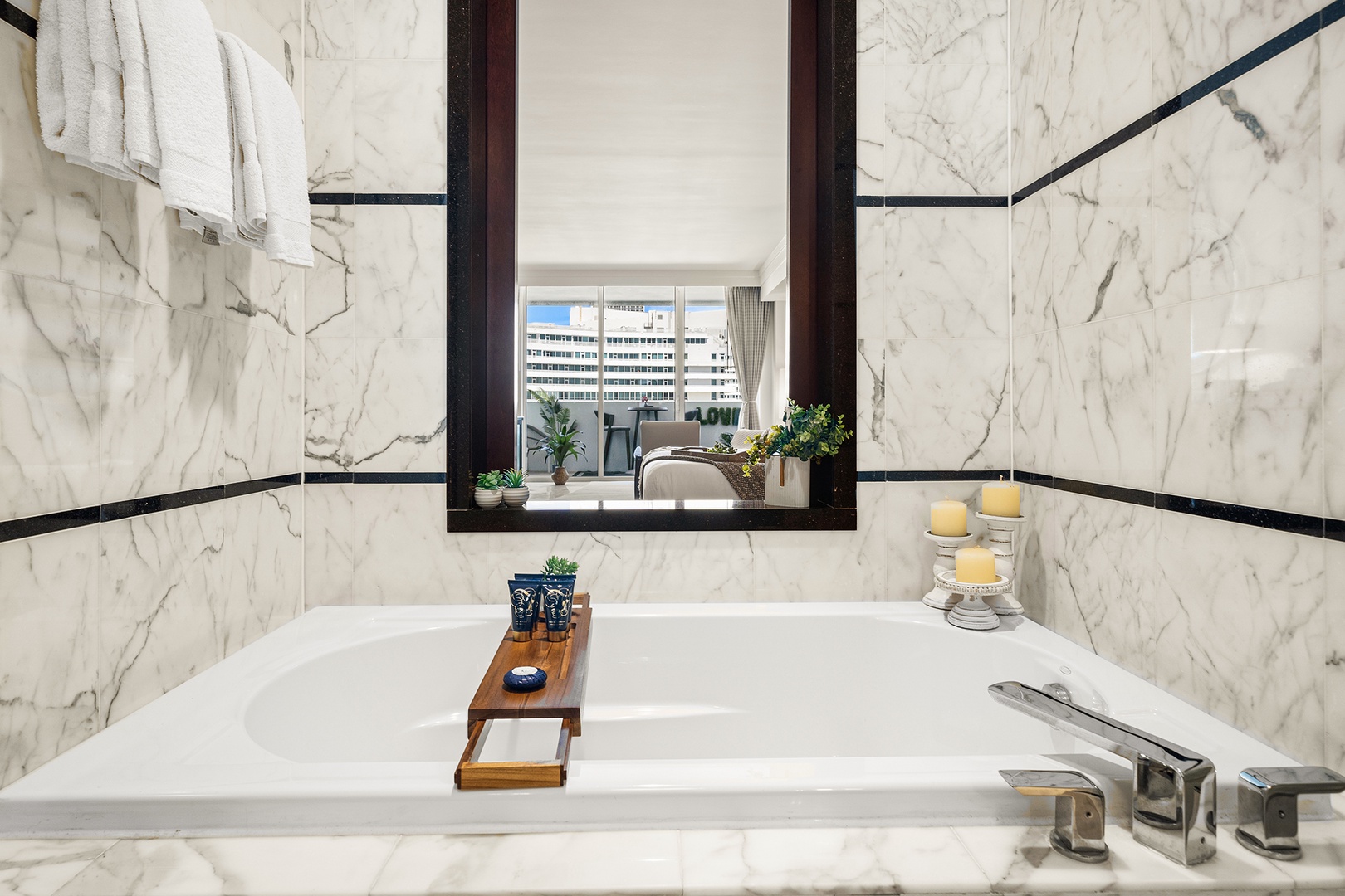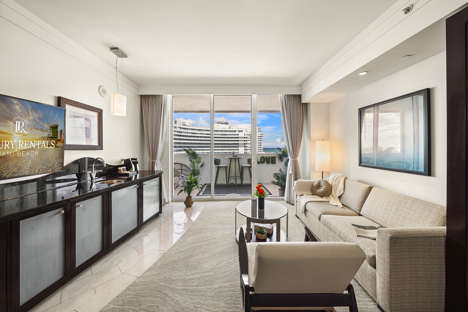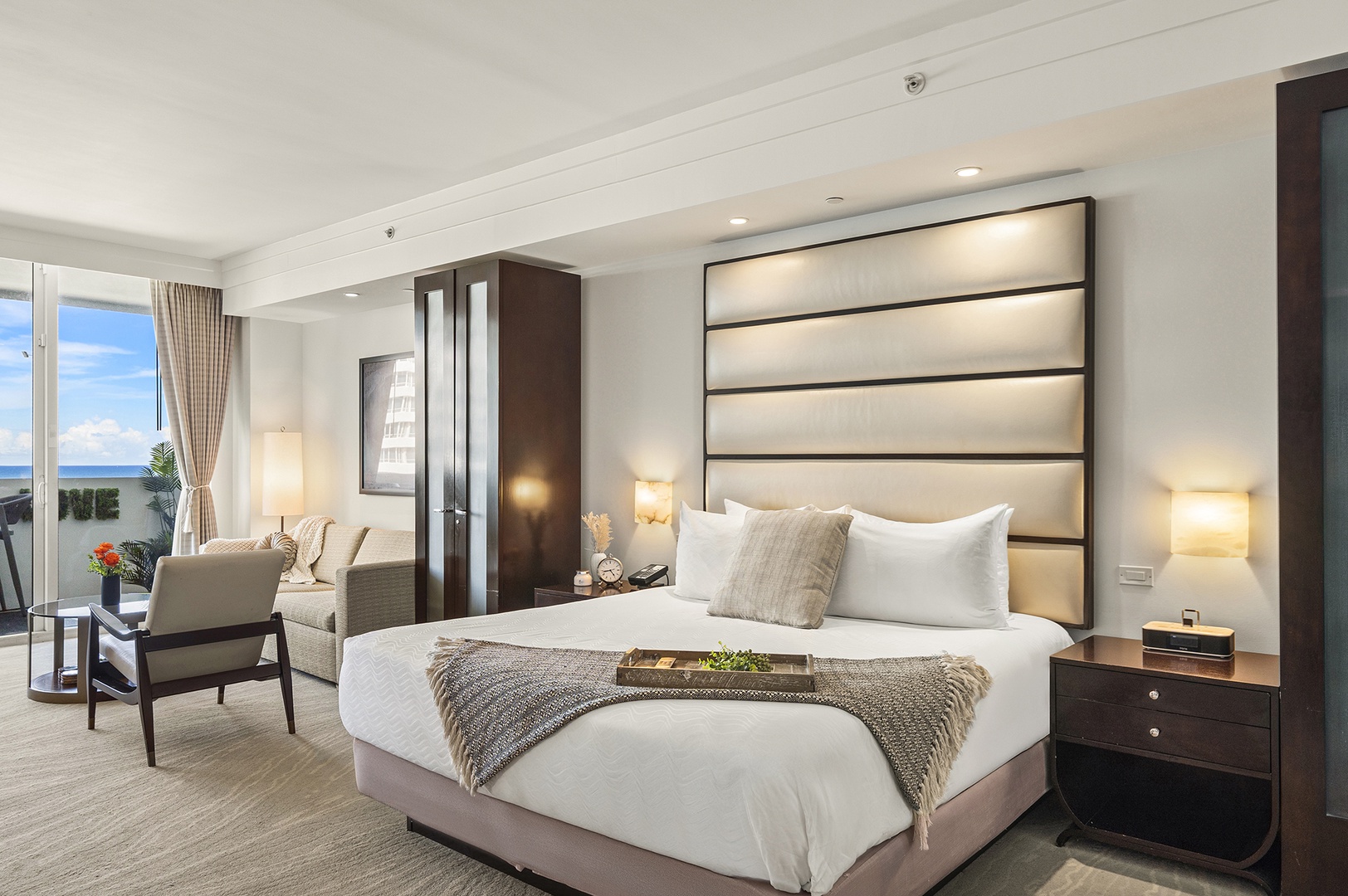 The studio residence merges history and style with elegant interiors, marble bathrooms, and partial ocean views. io residence merges history and style with elegant interiors, marble bathrooms, and partial ocean views. Ideal for couples seeking the Fontainebleau experience in an intimate setting.