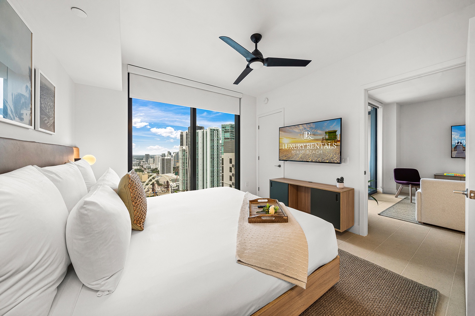 The one-bedroom residence features sleek interiors, floor-to-ceiling windows, and private balconies that capture Miami’s skyline views. Designed for comfort and flexibility, it’s ideal for travelers or professionals seeking a stylish urban retreat close to the city’s top attractions.