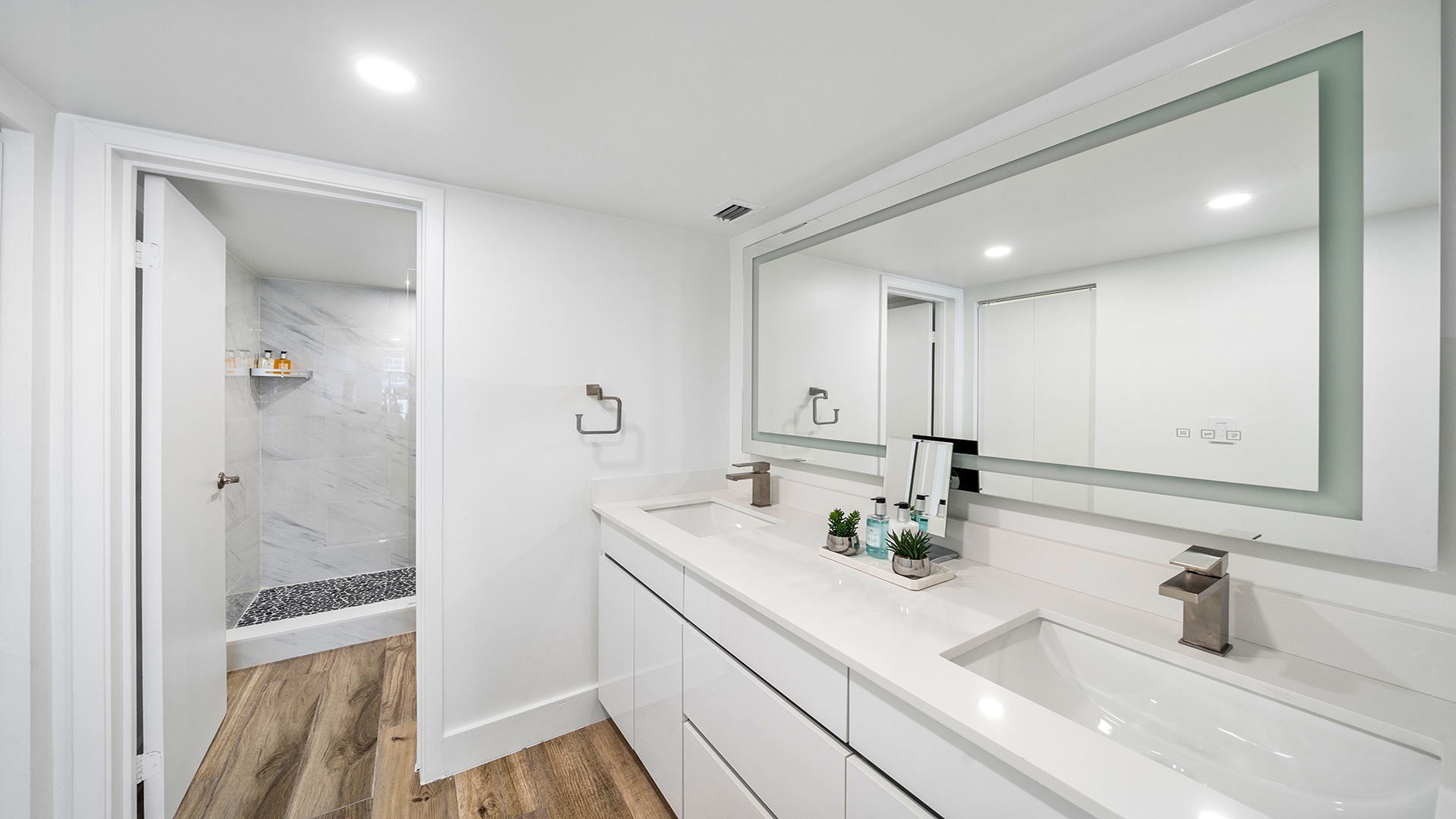 • Bathrooms are fully stocked with premium hotel room amenities and toiletries.