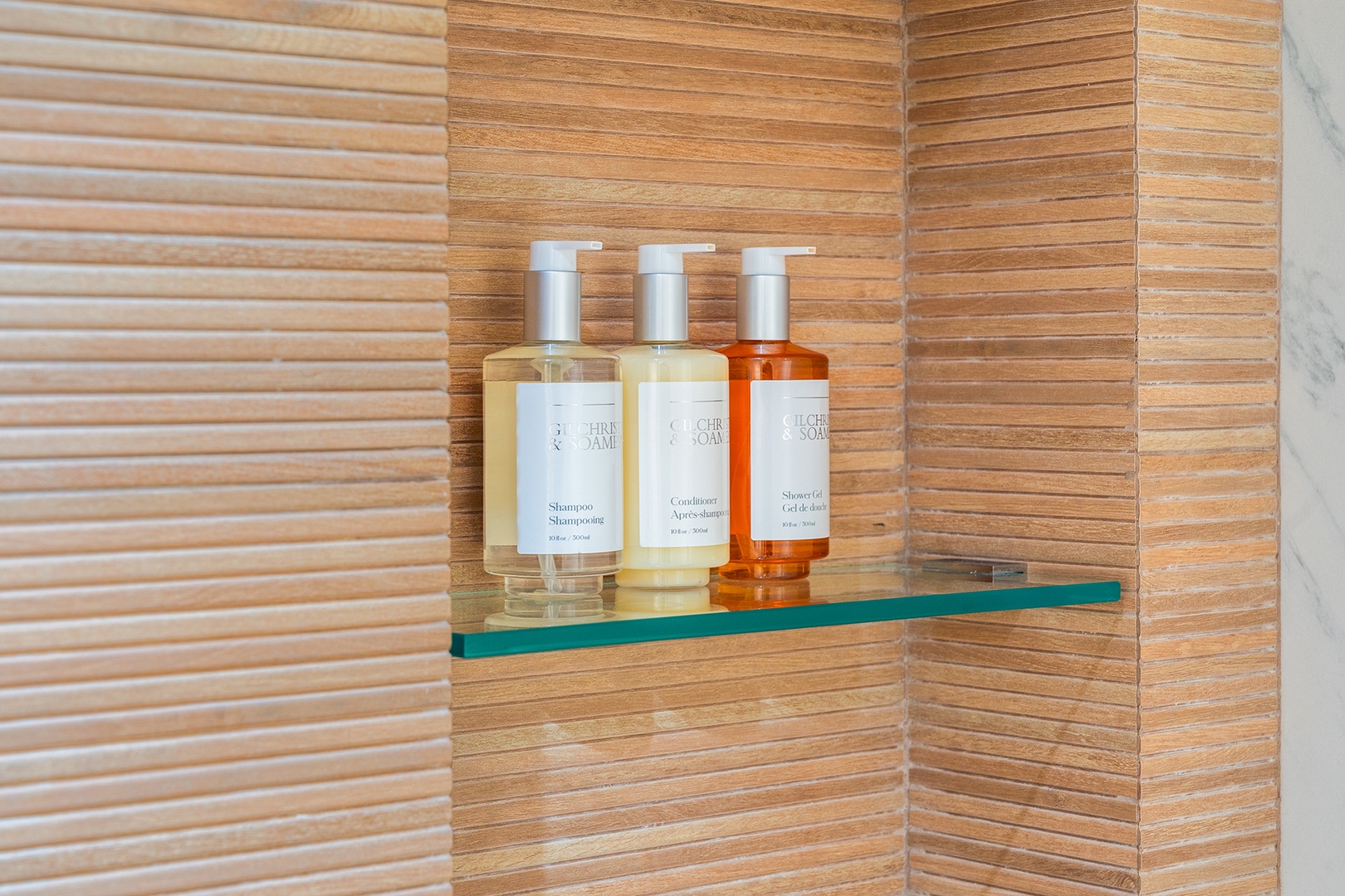• Bathrooms are fully stocked with premium hotel room amenities and toiletries.