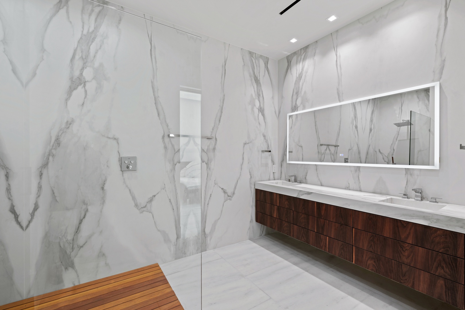 Feel the ocean breeze as you unwind in the contemporary living area that opens up to an expansive outdoor patio, including an infinity pool, a spa, a large seating area surrounding a fire pit, a built-in BBQ, and a private 100' dock. A fully-equipped chef's kitchen with state-of-the-art appliances includes a Wolf double oven, two dishwashers, a Miele coffee system, a wine refrigerator, a breakfast nook, and so much more. For formal dinners, enjoy the separate sophisticated dining area.