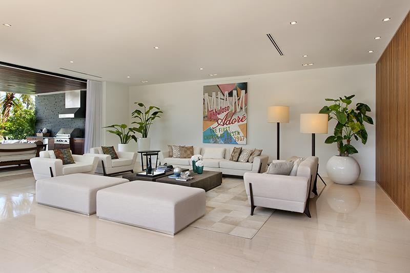 Stunning Luxurious 5393 sqft minimalistic masterpiece located on one of the most sought-after islands on Miami Beach. This home offers 5 bedrooms and 5 1/2 bathrooms with Western views of Downtown Miami. The kitchen is equipped with the best European brands. The Master Suite occupies a full wing and has 2 separate walk-in closets. The house is automated with smart-tech to enhance your enjoyment. The main living/dining area is surrounded by floor-to-ceiling high-end sliding glass doors offering wonderful views. Imported natural stone throughout the house.