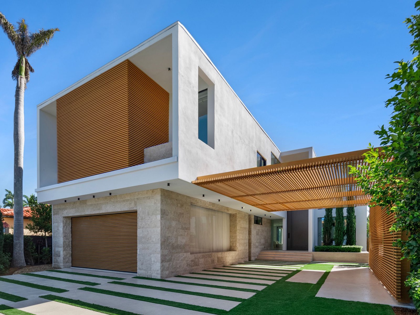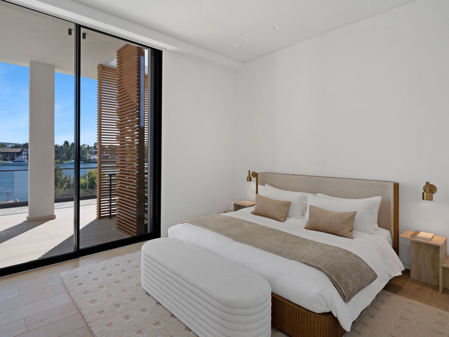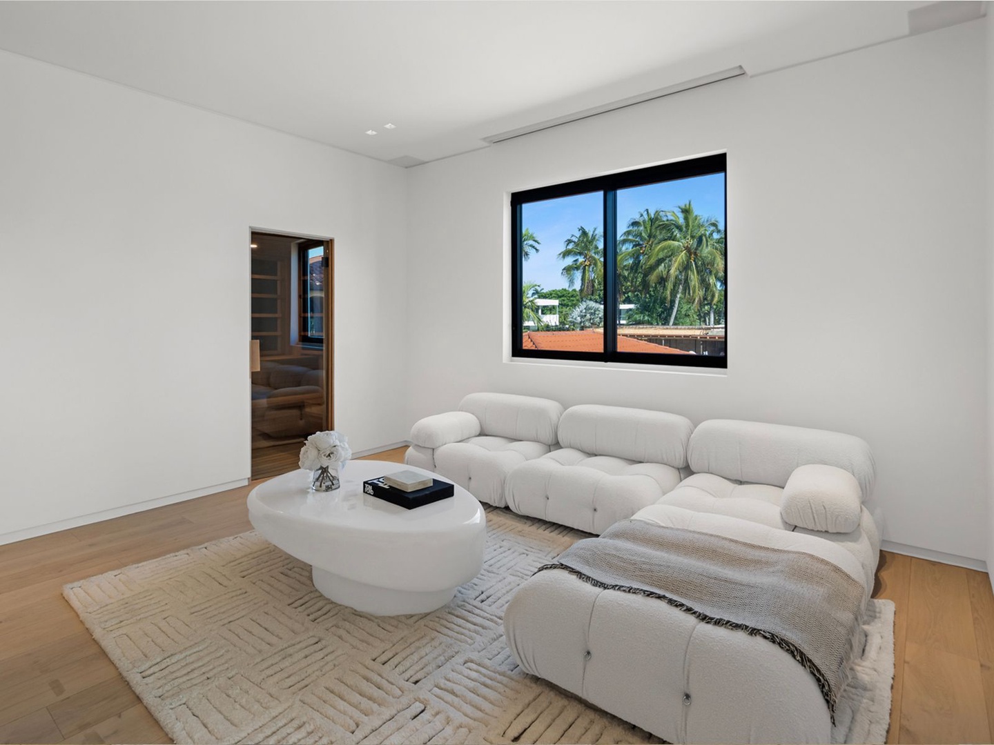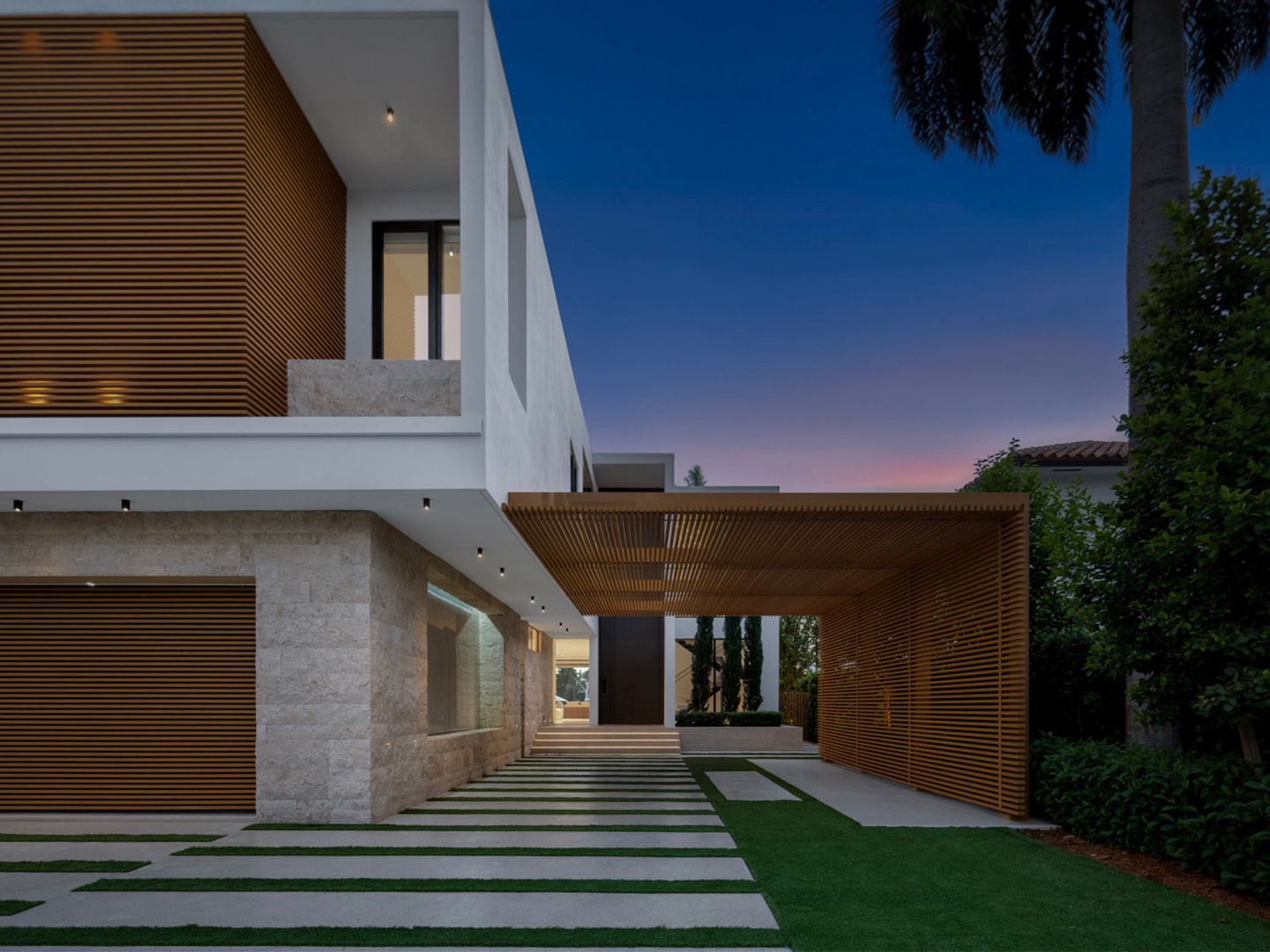 This striking modern residence, set behind the gates of prestigious Hibiscus Island, captivates with exceptional design, refined finishes, and unobstructed views of the downtown skyline. A dramatic 23-foot steel entry door unveils a waterfront salon framed in telescopic glass, where a contemporary fireplace and designer lighting create an atmosphere of sophistication.