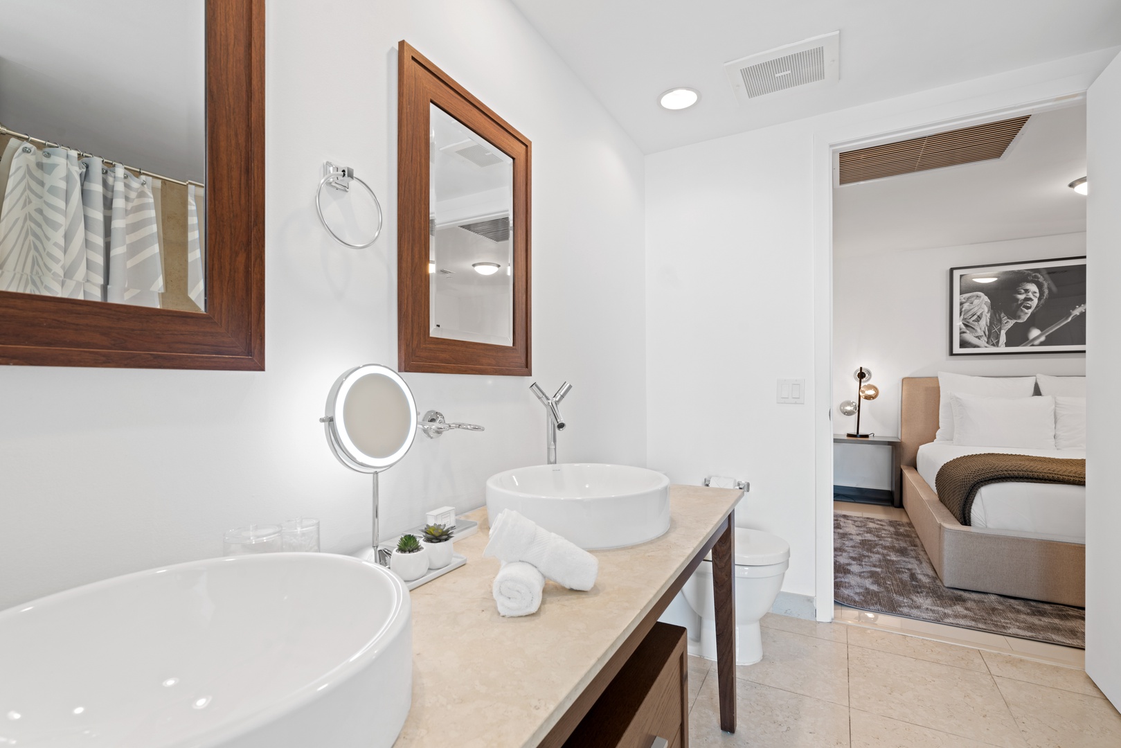 – Bathroom is fully stocked with premium amenities for your personal needs–to start you off (just as a hotel would).