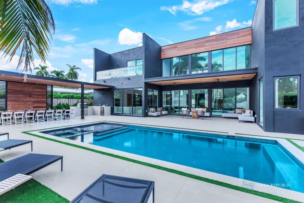 Most villas are designed for indoor–outdoor living, making outdoor gatherings a natural part of the experience, especially given Miami Beach’s climate and architectural style.